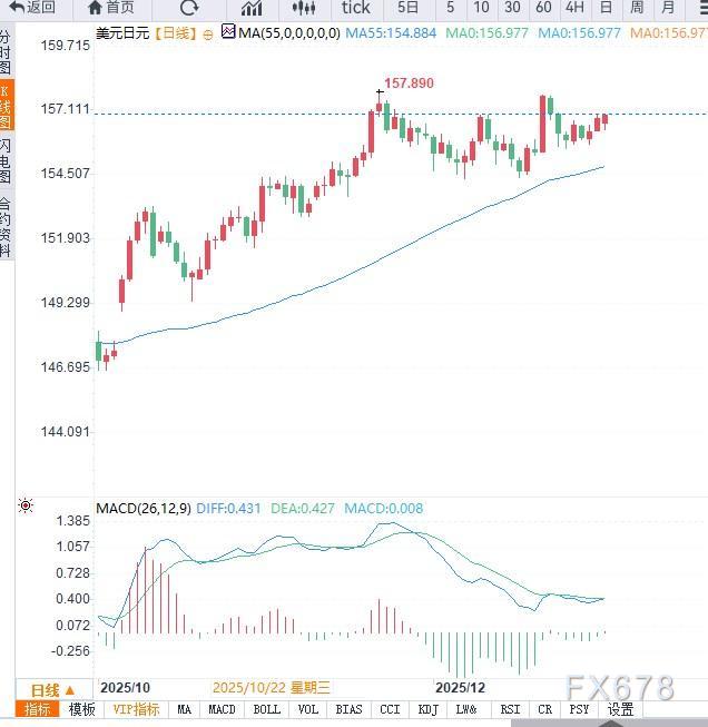 上方阻力关注 157.50—158.00 区域,若有效突破,可能打开新一轮上行空间;