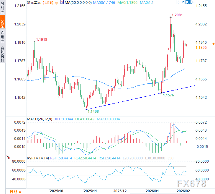 汇通财经APP讯——周三(2月11日)亚市时段,欧元/美元保持在稳固高位整理,现于1.1900附近窄幅震荡,在过去三个交易日中累计上涨超过1.00%,这反映出近期汇价多头重新获得积极情绪。这种上行压力部分源于市场对即将公布的美国非农就业数据的预期,以及该数据可能对货币政策产生的影响。